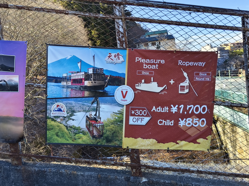 「組合套票」:纜車+河口湖遊覽船,大人1700日圓、兒童850日圓。