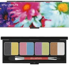 【花舞晶伶】限量彩妝,完美呈現了視覺藝術家蜷川實花,她對色彩的獨特見解,除了她親自挑選與shu uemura共同研發的獨創彩妝色彩外,更全程參與彩妝視覺的設計,並親自拍攝充滿視覺驚喜的【花舞晶伶】產品與人物視覺。從彩妝品到影像,蜷川實花都用濃烈大膽色調、幾近對比衝突卻又平衡協調的一系列高飽和敏銳色彩,來表現出女性無窮盡、生動而多變的情態之美。其中,限量眼彩盤外盒設計,是由國際知名攝影師蜷川實花掌鏡,以鮮豔花朵為主題的攝影作品,視覺上分別呈現雪舞冬櫻/燦菊盛灩/玫瑰花語的3種不同花卉主題,並延伸攝影作品中綺麗花色,創作研發獨家的彩妝新色。每盒影彩盤共有7種互相搭配眼影色,並以1色作描繪眼線使用的眼影霜,另附棉棒及眼線刷的雙刷頭隨身筆具,能無時無刻為女人,創造出跳躍、生動、有趣的妝容。