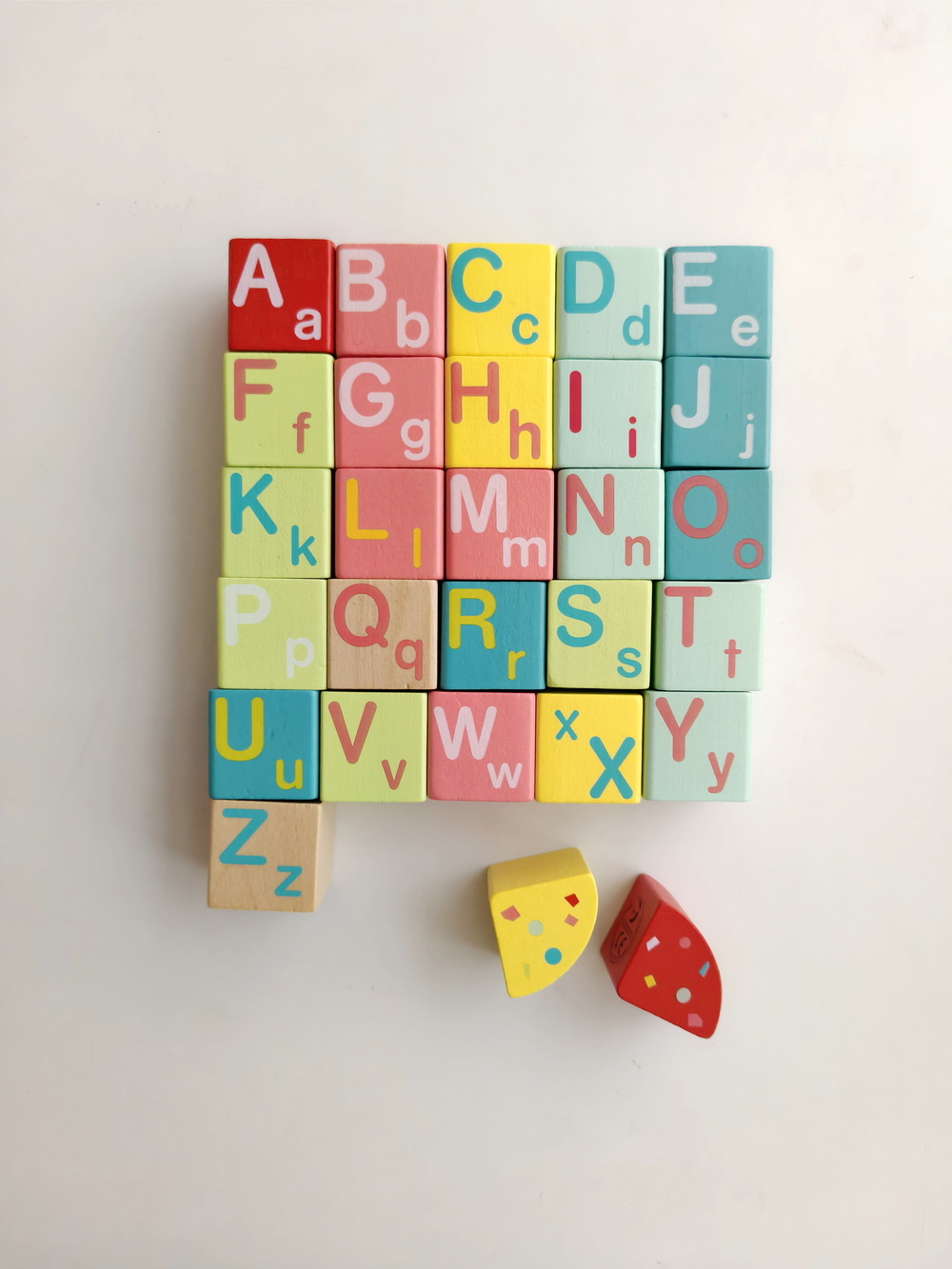 我叫柚子照英文字母順序排好,上面有大小寫,可以讓孩子認識英文字母