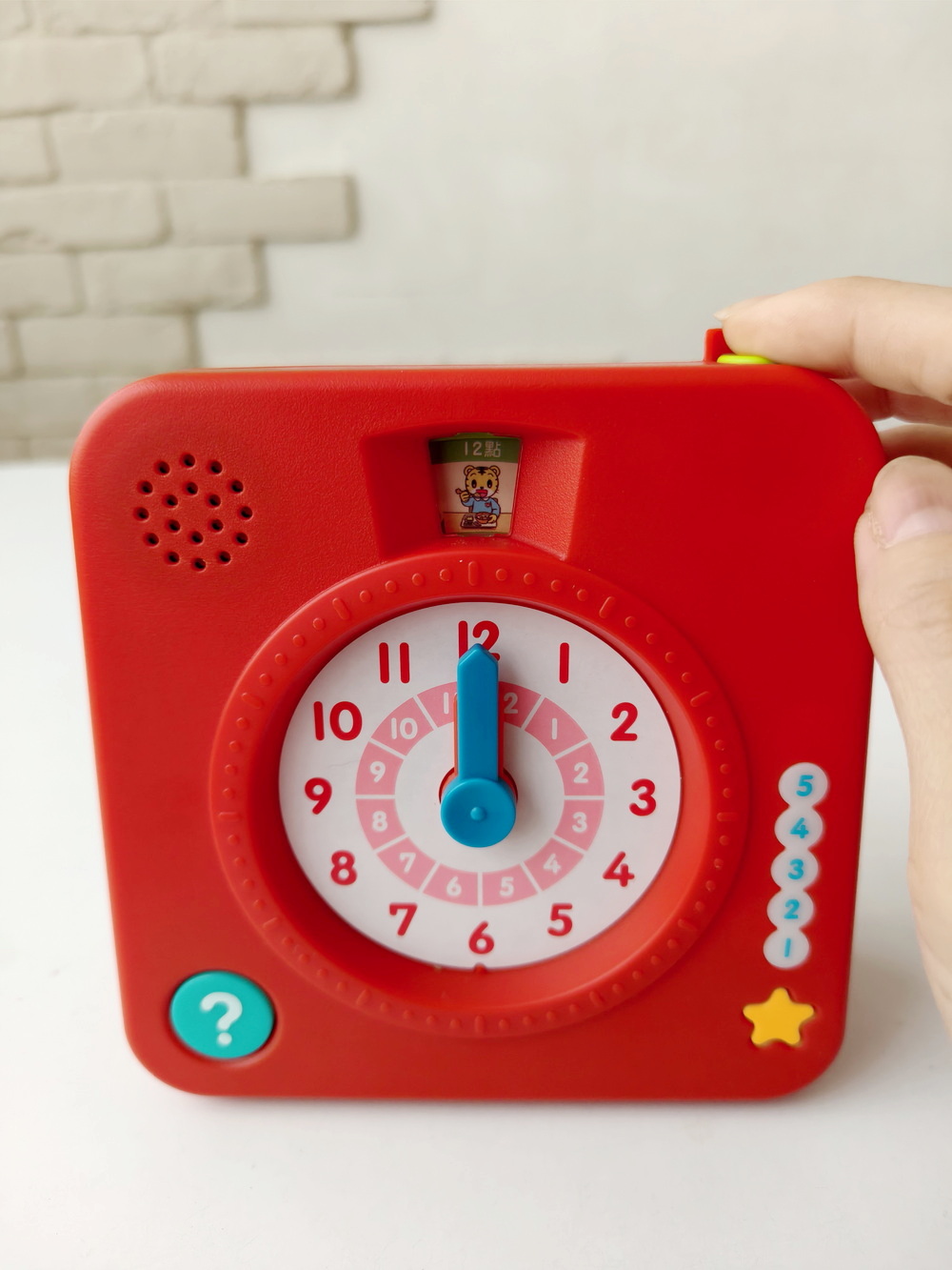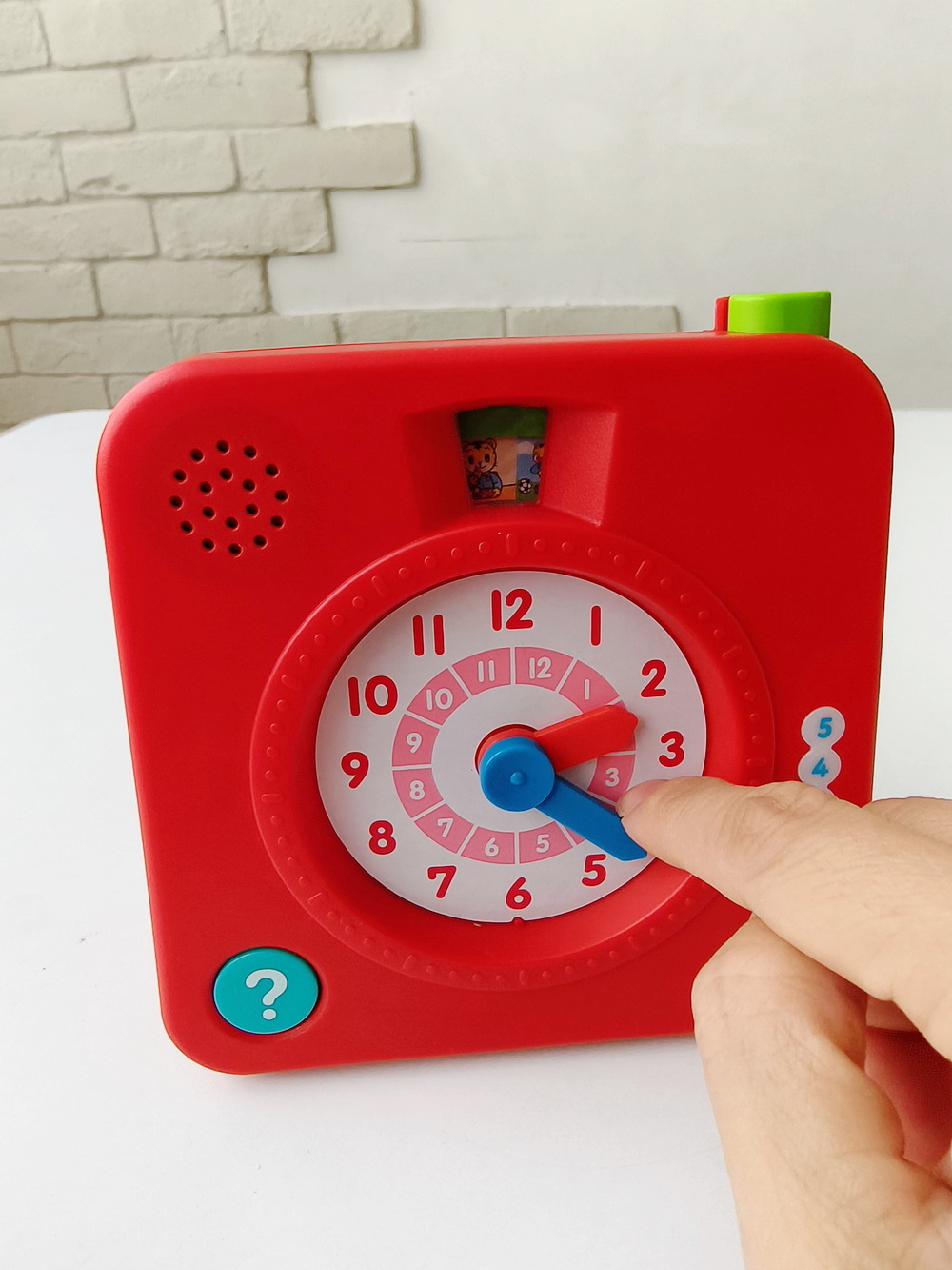 轉動分針,上面的圖案就會變,會出現巧虎一整天的作息