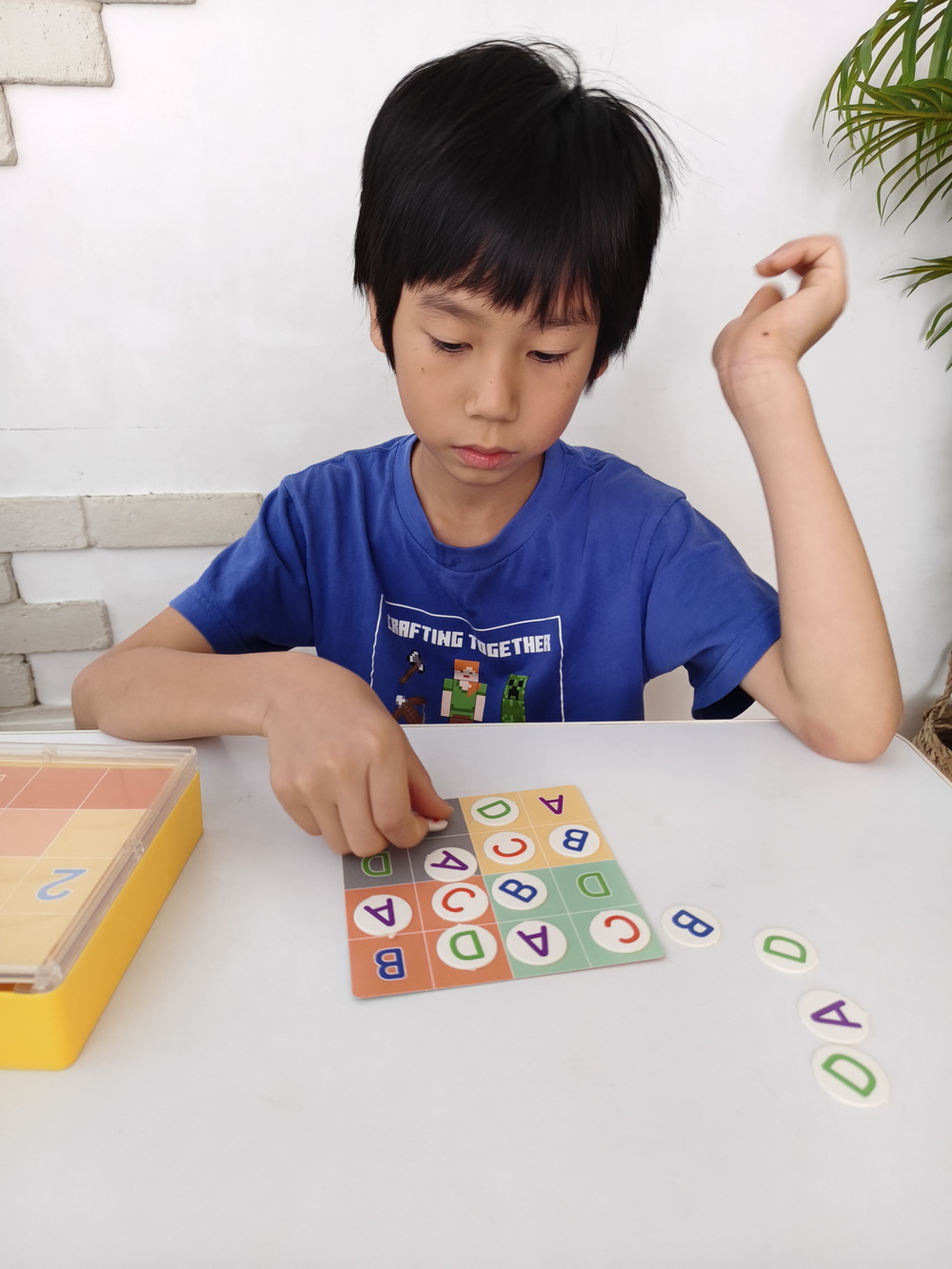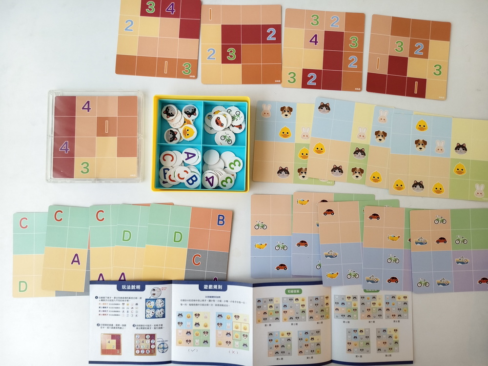 這款數獨有四種樣式:英文字母、數字、動物、交通工具