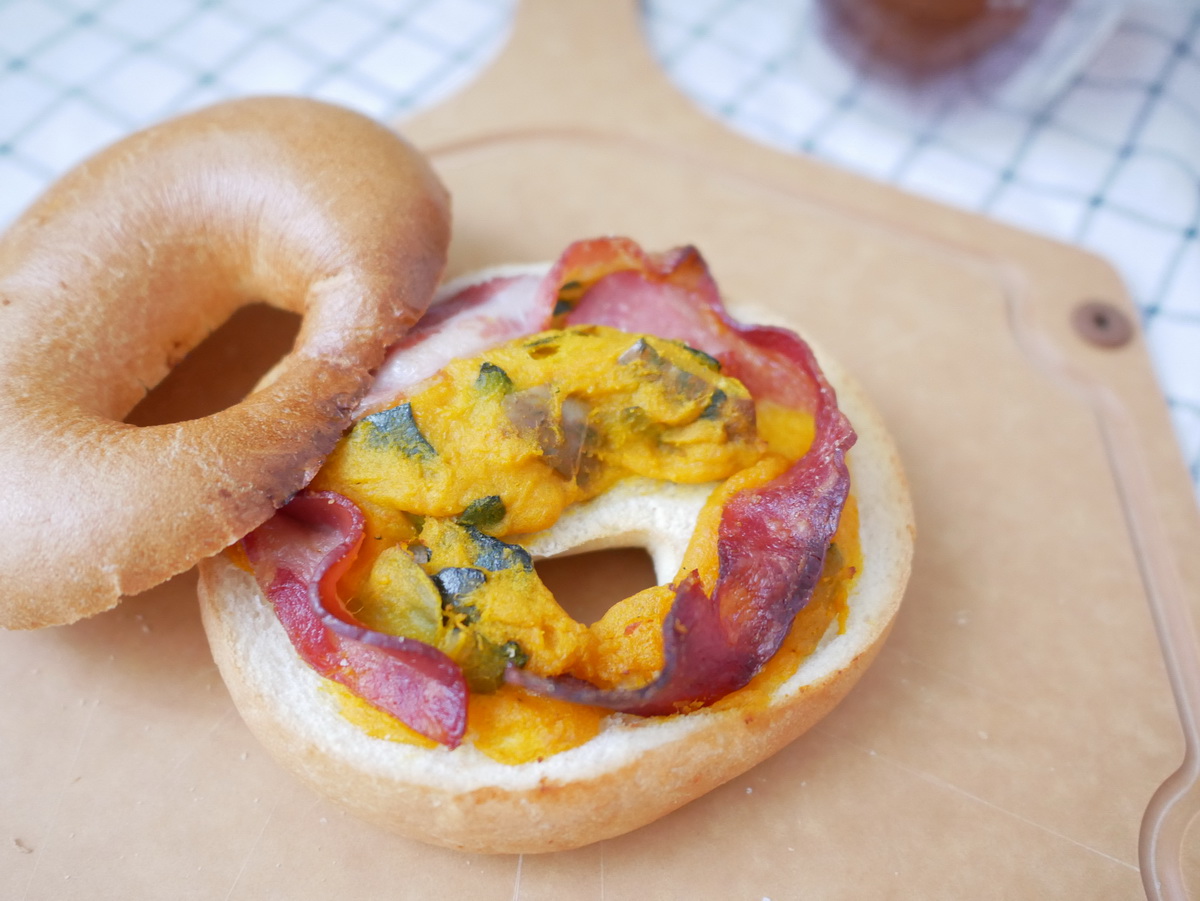 起司貝果跟肉鬆有種中西結合的風味,意外得搭