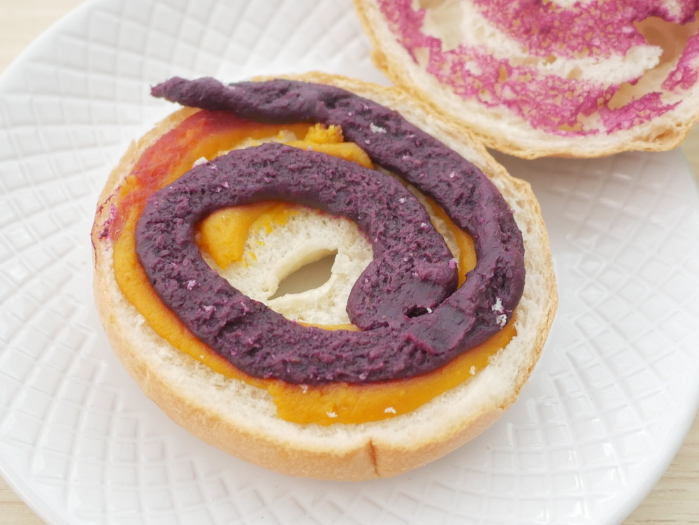 這個麵包體是原味貝果,裡面採用兩種地瓜