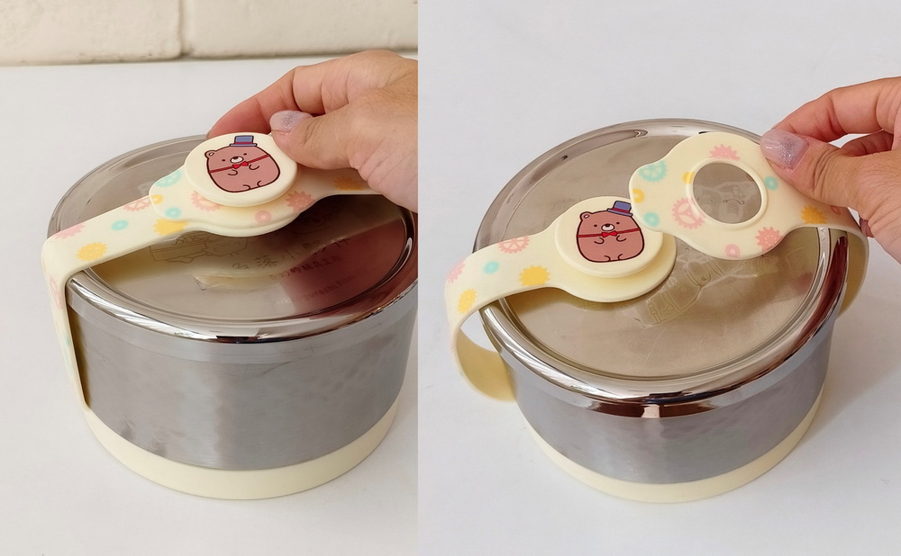 不鏽鋼碗蓋有凸點,可以卡住不容易鬆脫,也不會很難拔開,小孩可以自己操作