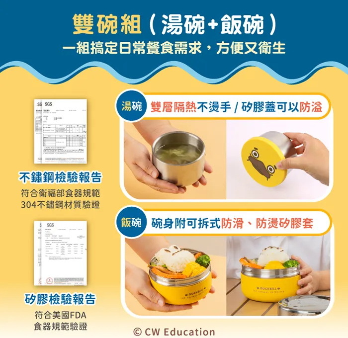 有些幼兒園規定碗+蓋子都要全不鏽鋼的,這款就是全不鏽鋼的