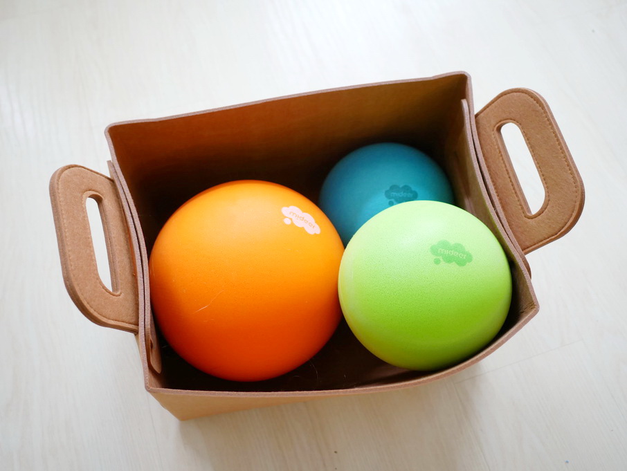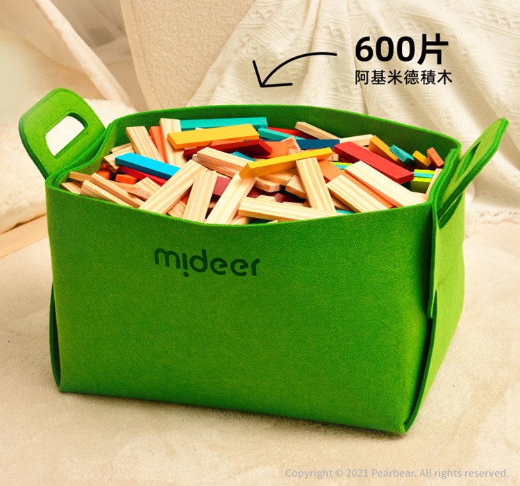 丸子柚子很愛玩阿基米德積木,有時候很懶得排整齊放回盒子裡,全部丟進這個收納籃就好,超省事!