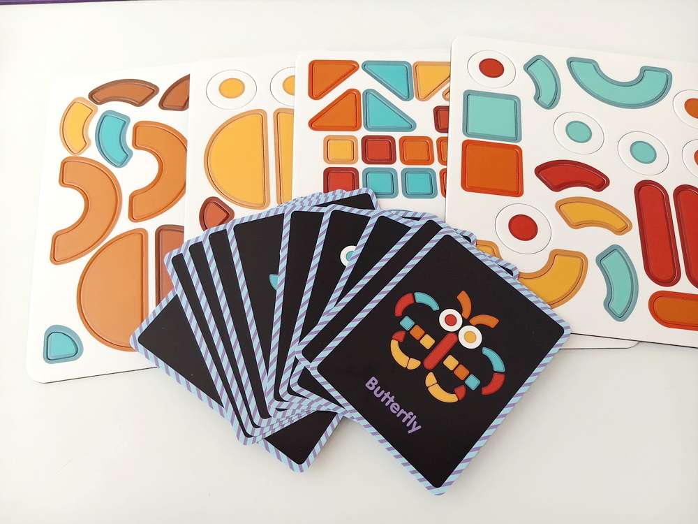 這款的磁鐵是各種不同的幾何圖形,拼出跟圖卡一樣的造型,也可以自行創作