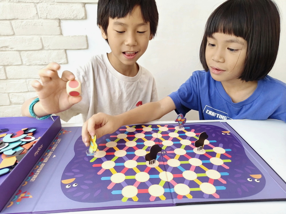 他們去年就很愛玩尋寶棋,就是骰骰子走幾格,看誰先走到終點