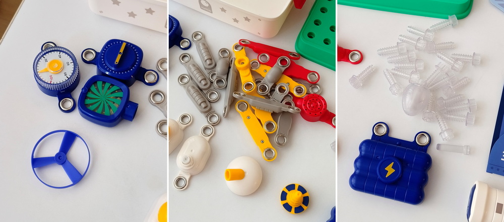 有探測器(會飛起來)、掃描儀、計時器、壓力表、揚聲器(會發出聲音)、雷達(會轉)、企鵝蛋(會亮)、鑽頭(會轉)