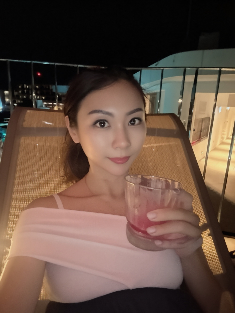 可以帶去戶外泳池邊喝邊看風景。不時還有飛機飛過,超享受