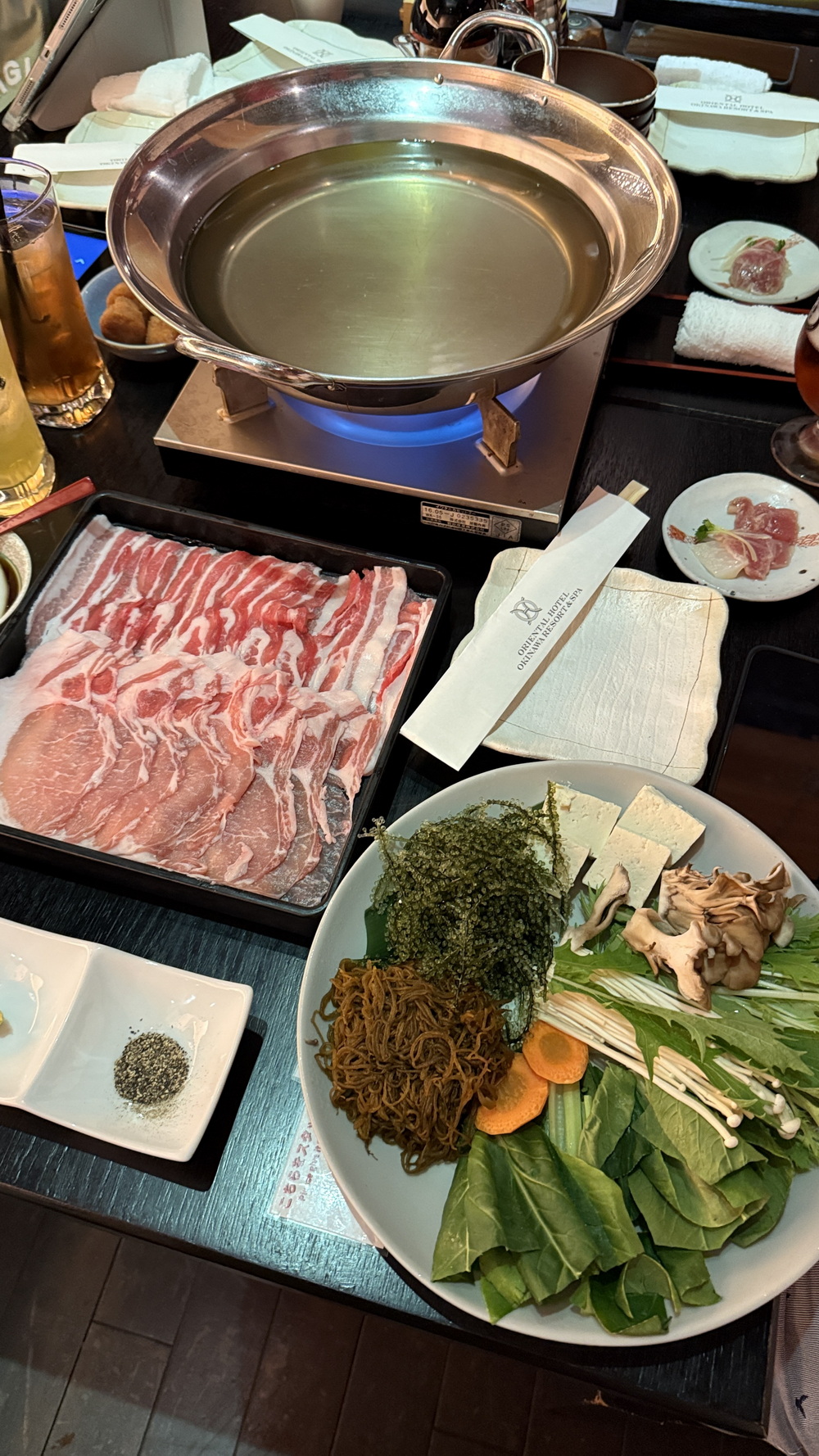 晚餐吃飯店的涮涮鍋,我們點了阿古豬。豬肉很好吃,