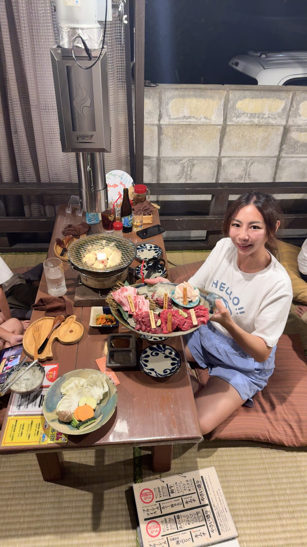 晚餐吃沖繩古民家七輪燒肉,這家超好吃,但烤肉的煙滿大的,坐在半戶外,有點熱