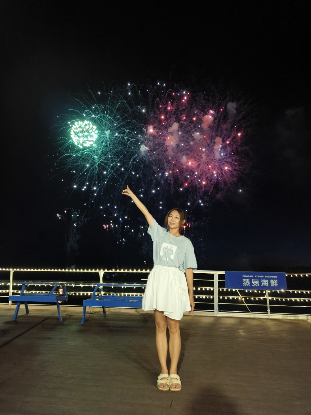 而且餐廳的陽台可以直接看到煙火,超美!我們吃完飯就在海邊放仙女棒。