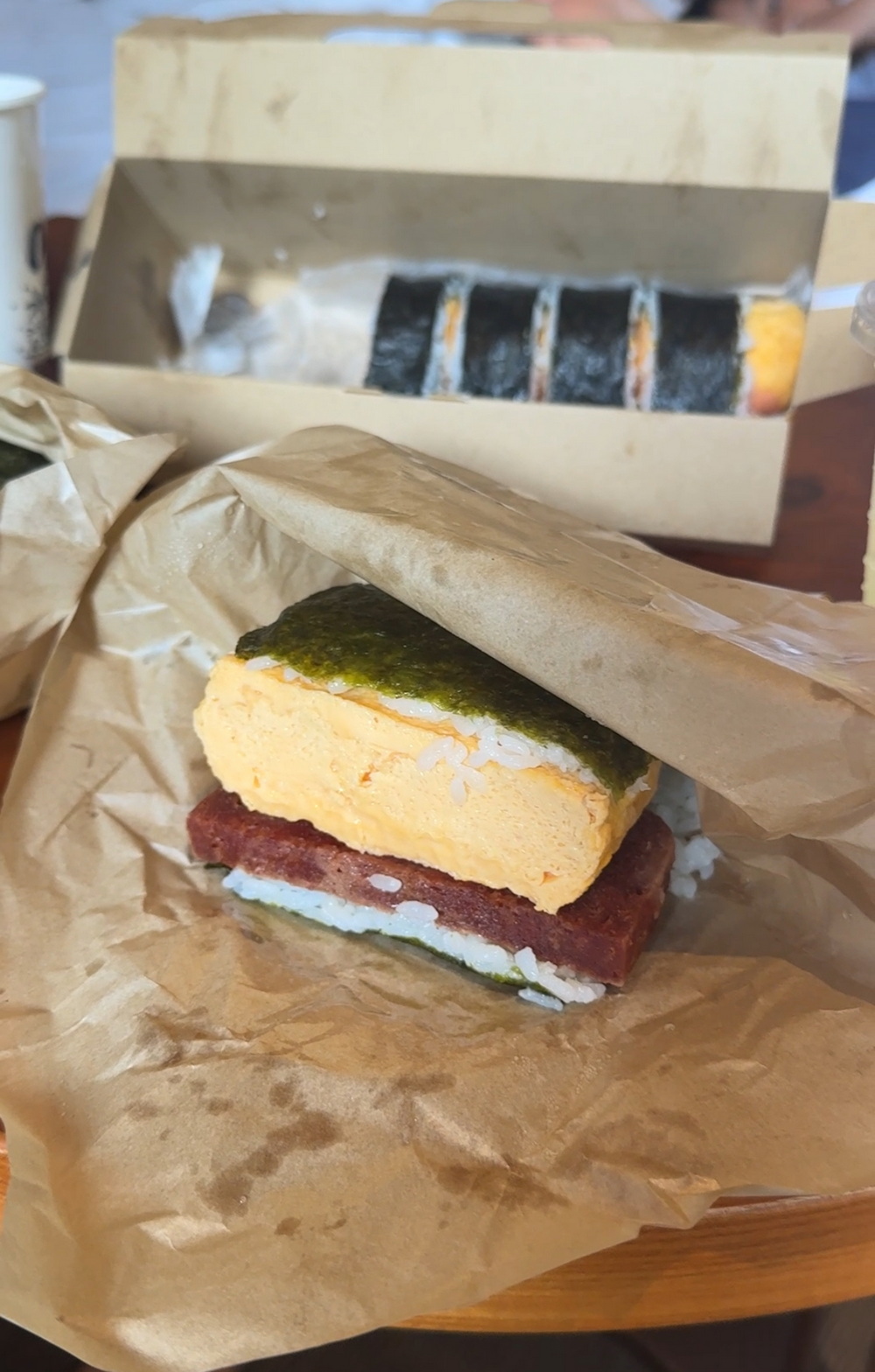 我跟小環一起去國際通買沖繩飯糰。很紅的那家大排長龍,我們直接放棄,去隔壁巷子買福助飯糰。