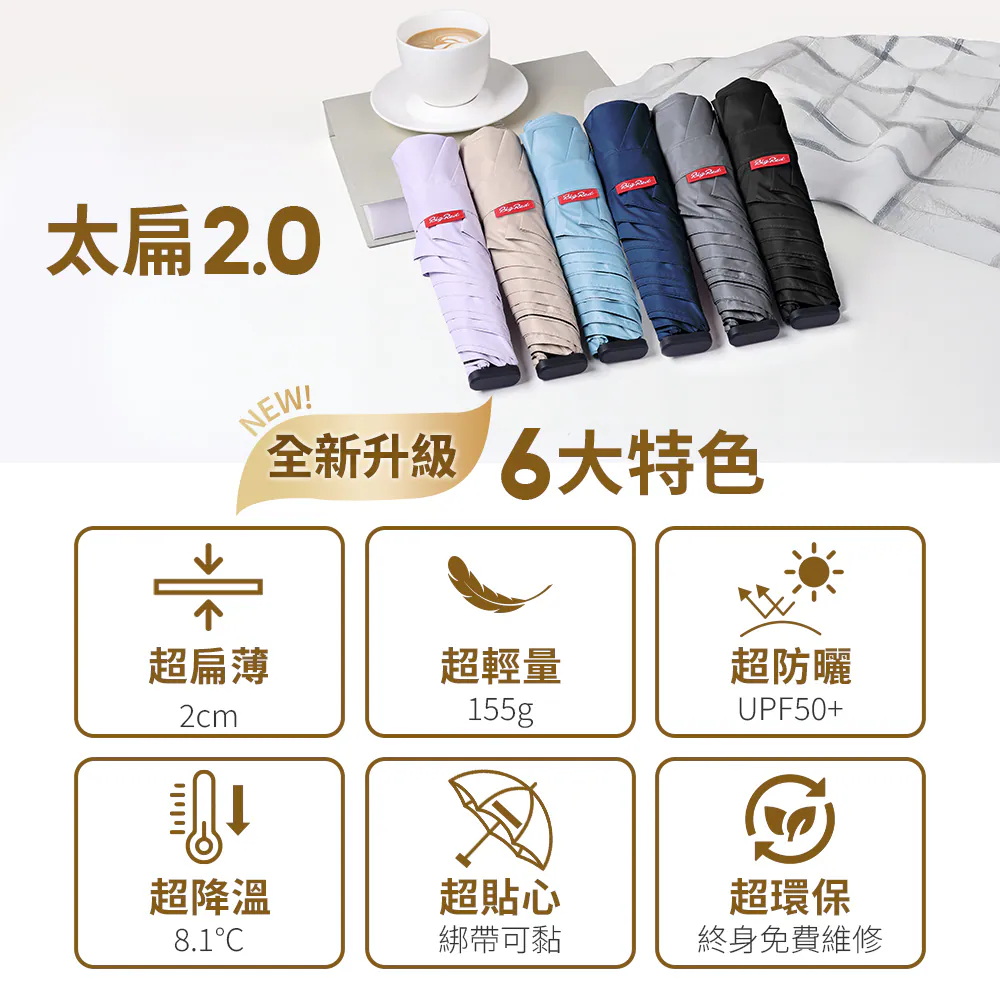 主要功能:超輕、扁型造型好收納、安全開關防夾手、防風、擋雨、手開、防曬、遮陽、降溫