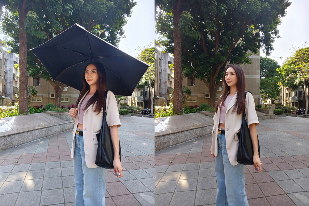 撐傘後整個臉都是陰影,完全遮蔽,保護皮膚
