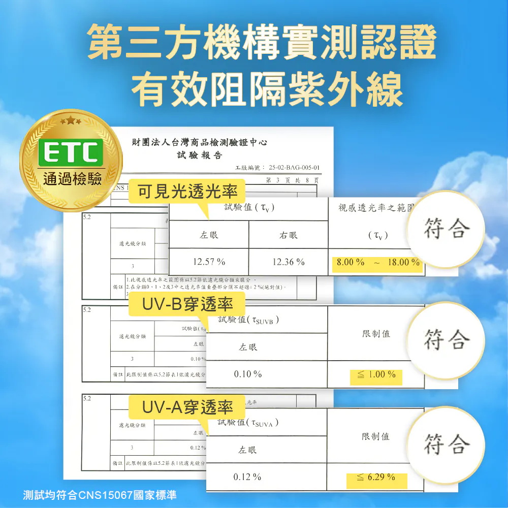 TCA偏光鏡片,可以過濾掉雜亂的光線,讓視線更清晰